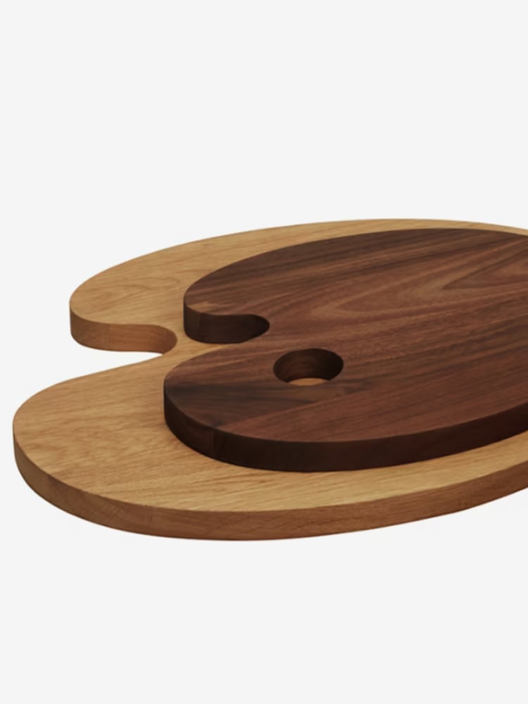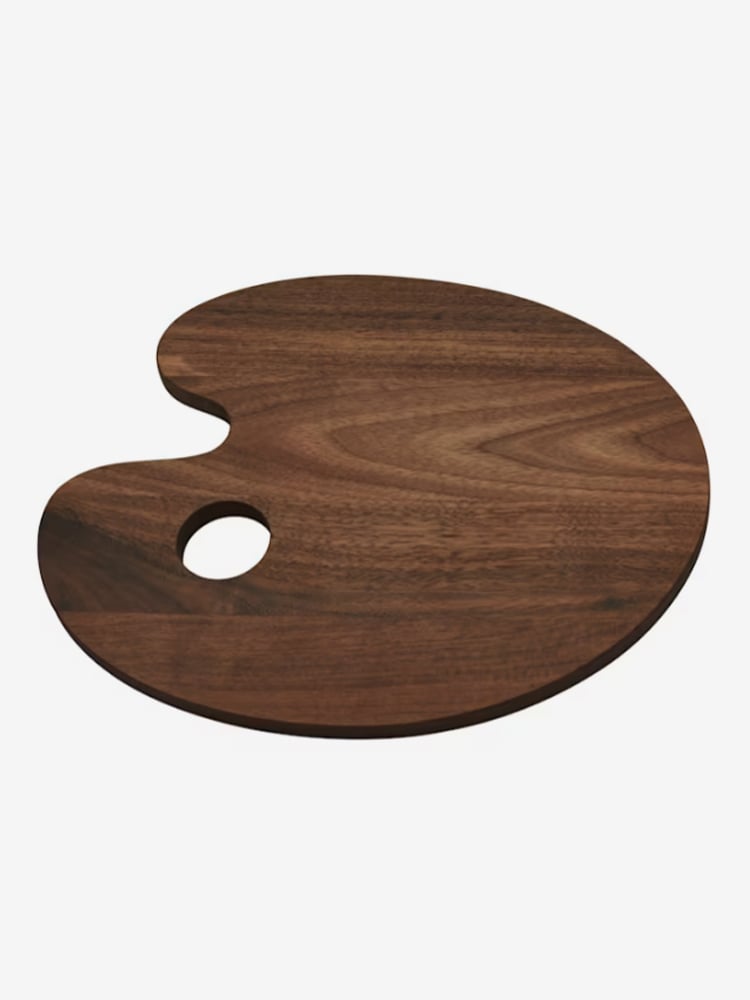 A playful object of curiosity—part kitchen essential, part pop-culture icon. Crafted from thick, solid wood with a bold, ergonomic silhouette, the Palette serves beautifully as both a chopping board and a creative cheese-serving piece. Available in large or small, in walnut or oak.